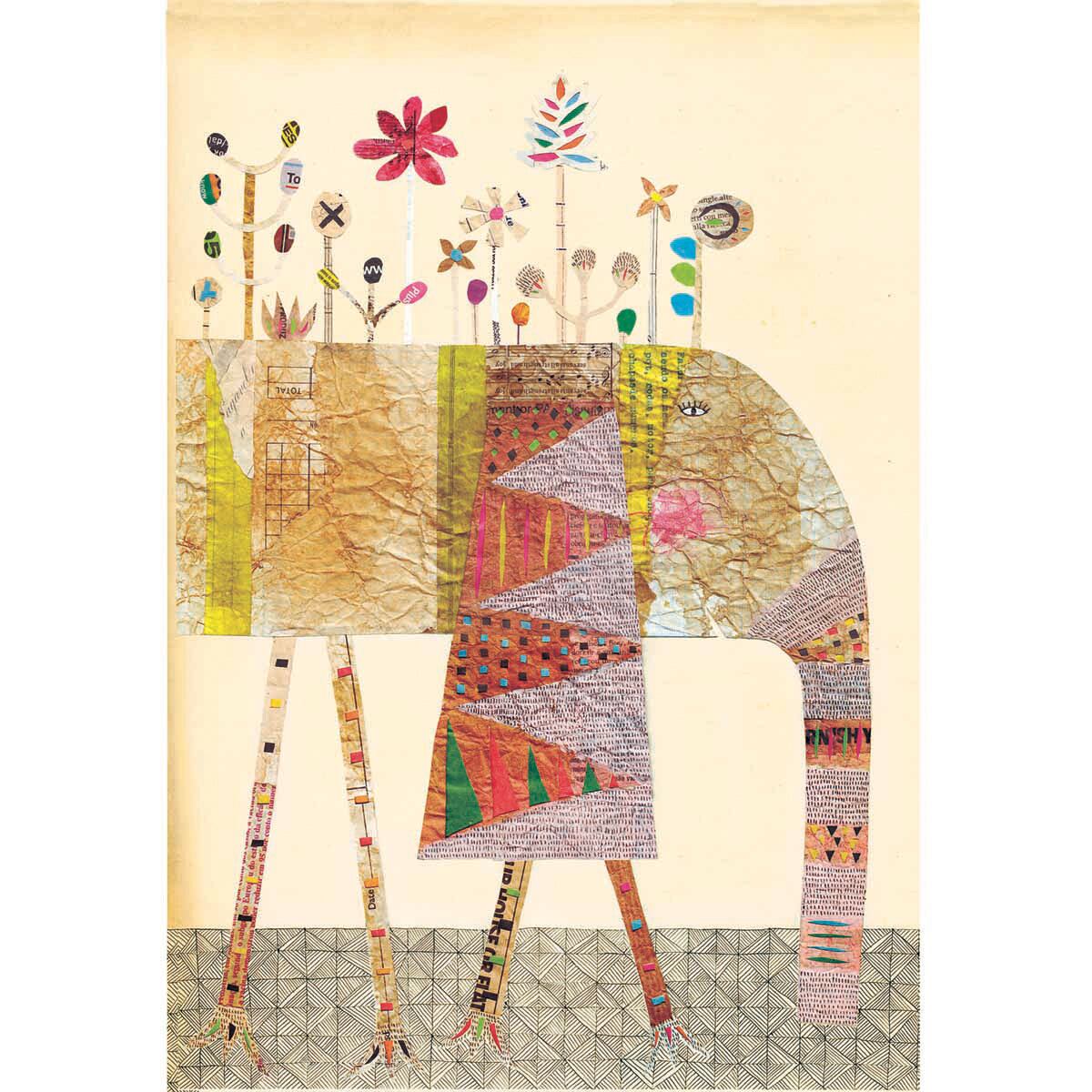 古紙や古本などの素材を使ってコラージュで描かれた不思議な動物たち。